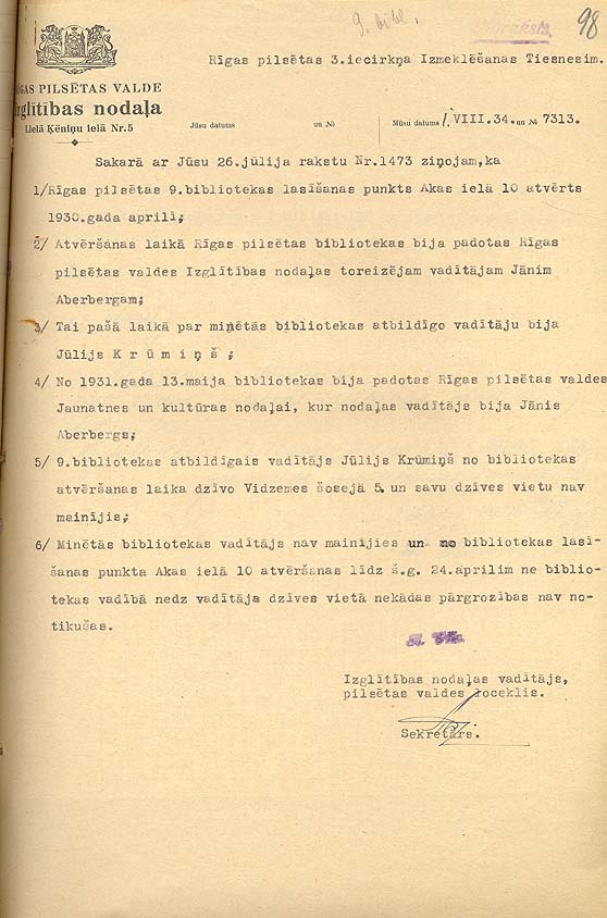 akts par majas nodosoanu bibliotekai 1927 gada 14 julijs