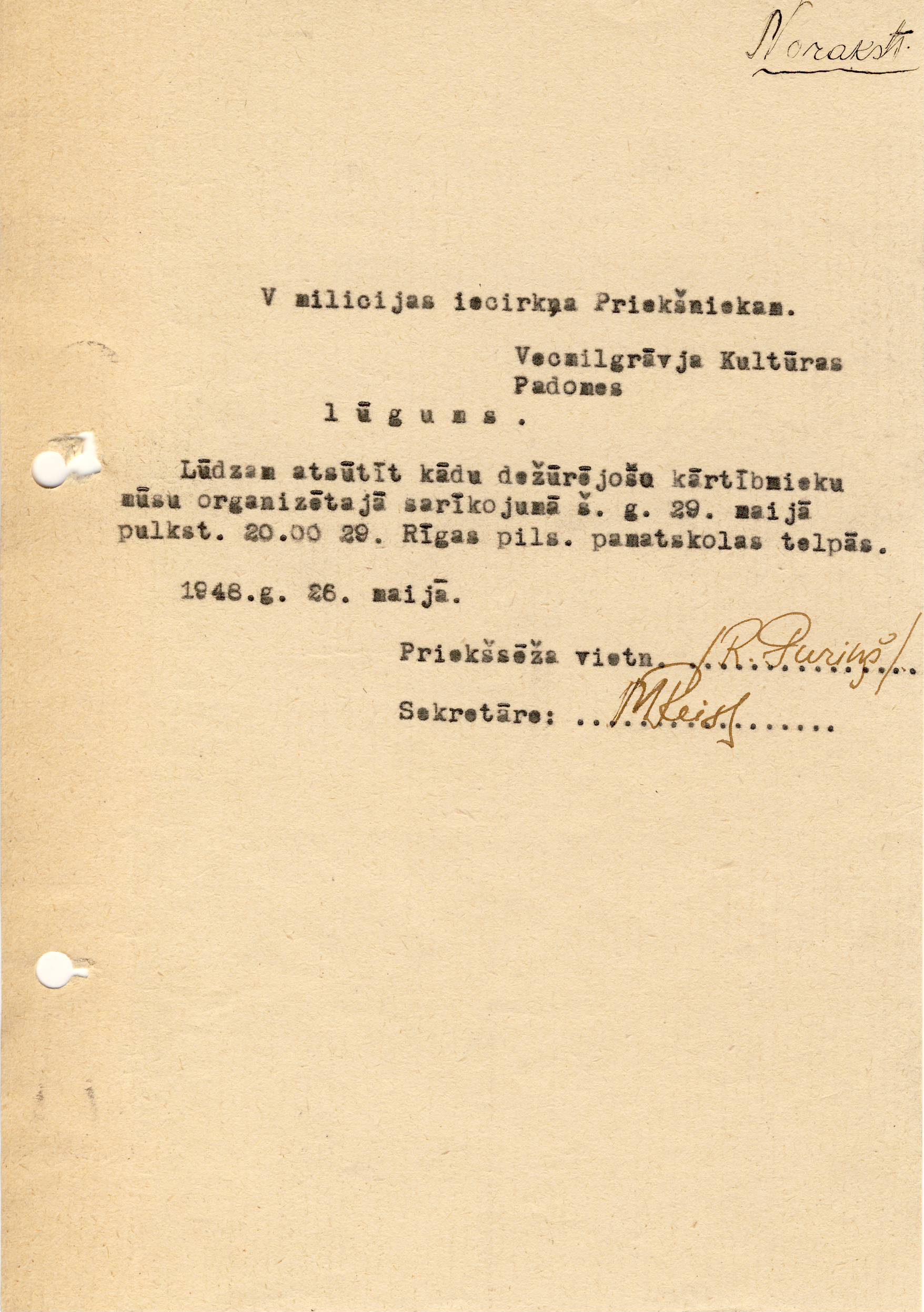 pieprasijums par piebuves parbuvi 1932 gada 26 julija
